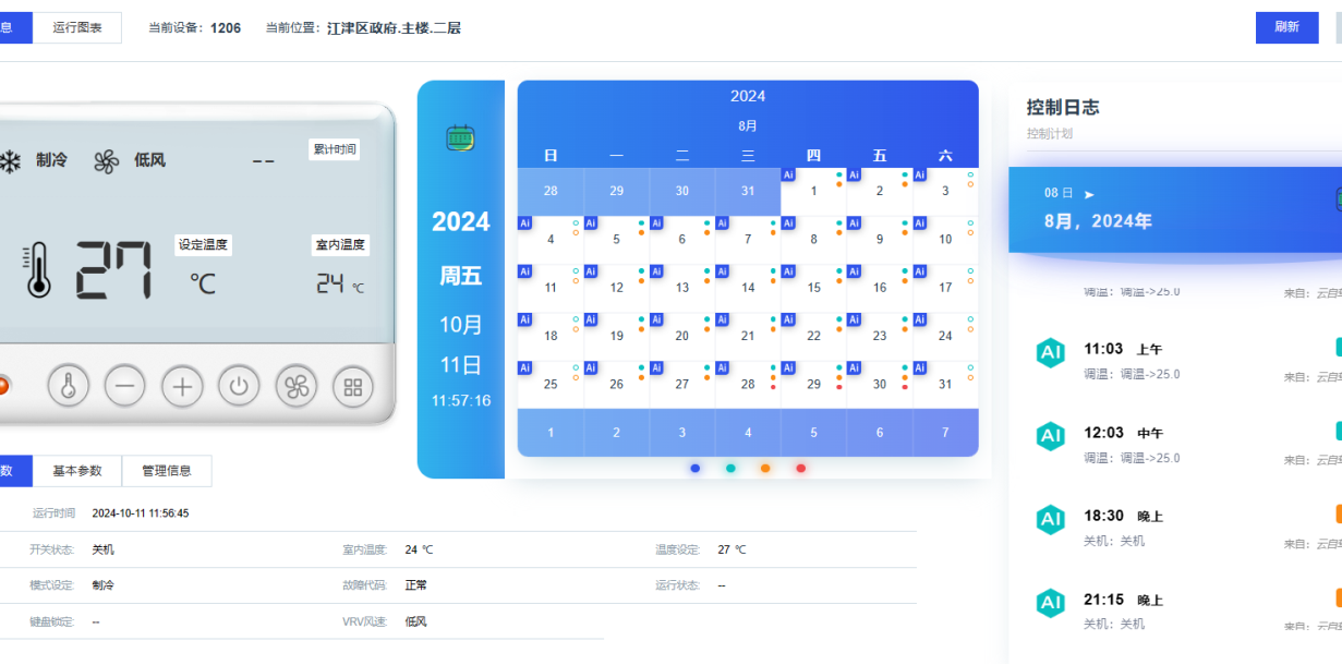 解决方案:一是强化技术自适应调节。充分发挥AI群控算法优势,通过对历史运行数据和实时室外气象参数的学习,动态优化冷冻水温度、机组启停顺序和运行台数,在极端条件下最大限度地提升冷源侧能效比(EER)。 二是实施负荷精细化管理。在保障党政机关基本办公需求的前提下,制定了《高温期空调精细化运行策略》。对公共区域、走廊等非核心区实施温度上限控制;利用预冷功能,在电价谷段提前降低建筑基础温度,错峰运行;加强门窗开启管理巡查,减少冷量损失。 三是加强设备预防性维护。针对高温天气下设备高负荷运行的特点,缩短了冷却塔清洗、滤网更换、冷凝器除尘等保养周期的间隔,确保换热设备始终处于最佳工作状态,杜绝因设备效率下降导致的能耗攀升。通过上述组合措施,有效对冲了部分极端天气带来的增耗影响,维护了项目整体节能效果的稳定性。