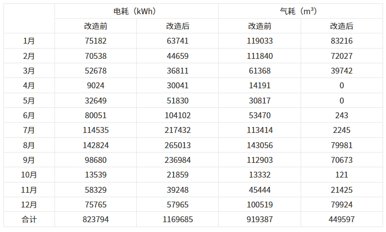 表2  改造前后用能数据对比