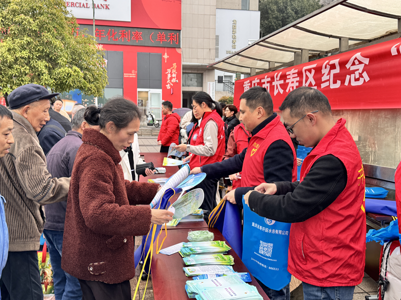 南岸区机关事务管理局联合多部门走进长生桥镇创智路社区,广泛动员党员志愿者、公共机构干部职工志愿者等,通过设置主题展板、发放宣传资料、现场咨询等形式,向人民群众普及节水知识、水价政策、水表更换流程及健康用水常识,共发放宣传品200余份,累计服务覆盖居民400余人。现场还开展了水表校验等便民服务,让居民直观了解用水计量相关知识,切实提升人民群众节水意识与用水服务获得感。